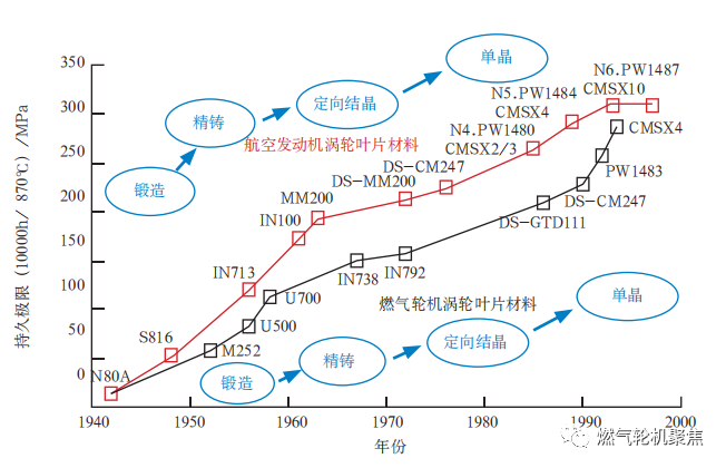高溫合金材料在燃?xì)廨啓C(jī)及航空發(fā)動機(jī)等領(lǐng)域發(fā)揮著至關(guān)重要的作用。隨著航空發(fā)動機(jī)推重比增大,渦輪前溫度不斷提高,要求高溫合金的力學(xué)性能也相應(yīng)提高。燃?xì)廨啓C(jī)功率和效率的不斷提高,是靠提高渦輪初溫(相當(dāng)于航空發(fā)動機(jī)的渦輪進(jìn)口溫度)來實現(xiàn)的,同樣需要采用承溫能力越來越高的高溫合金。